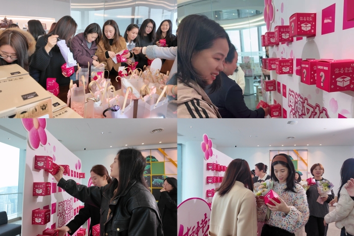 陪同着清早的阳光,每位女神在鲜花的映衬下,笑容越发绚烂,魅力无限!公司还特殊准备了拆盲盒环节,让每位女神在惊喜中感受到节日的快乐。